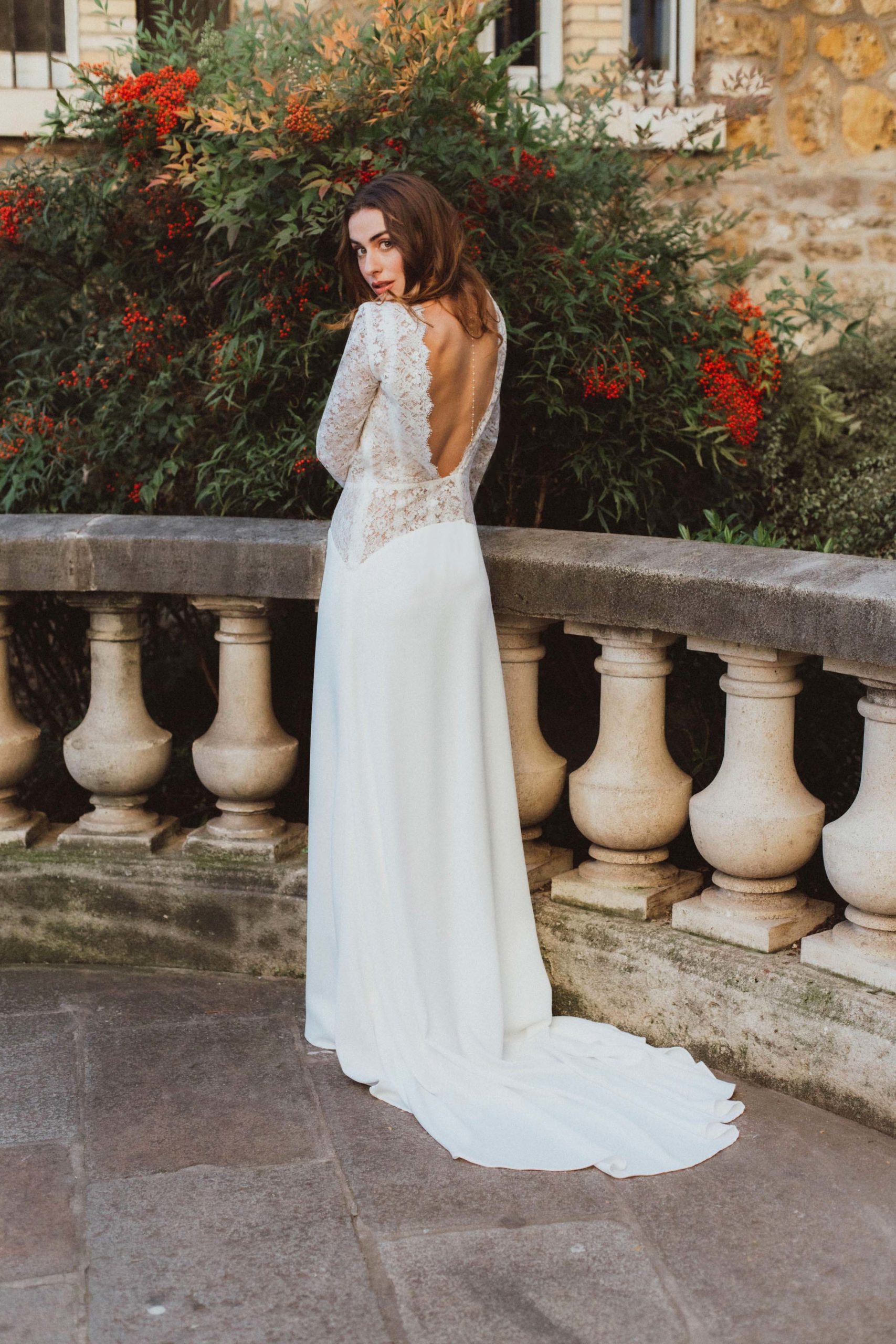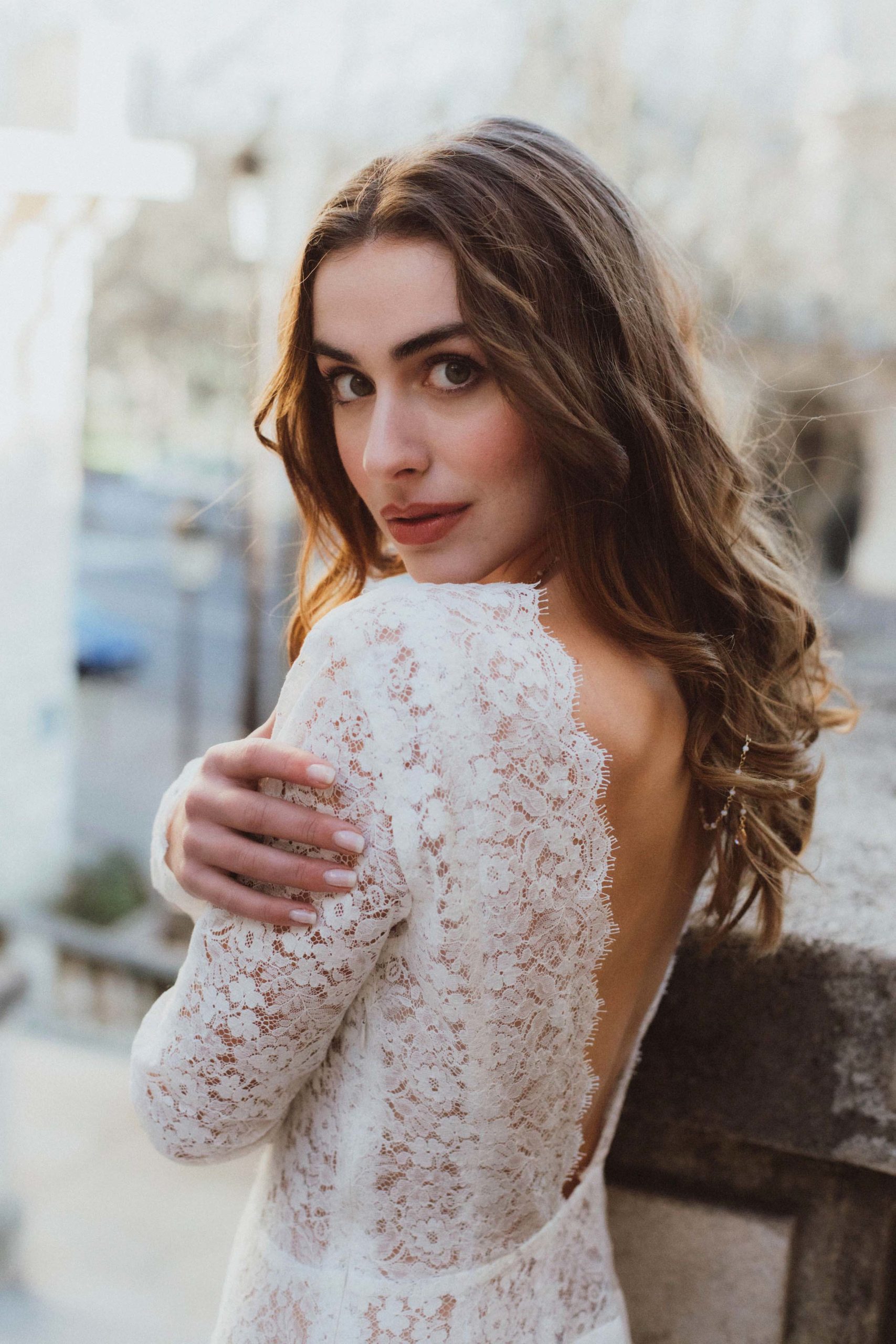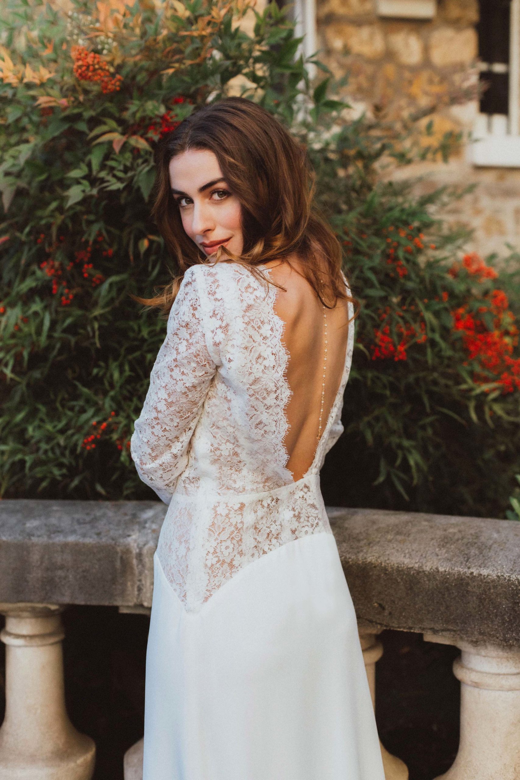 Décolleté plongeant devant et au dos avec finitions dentelées