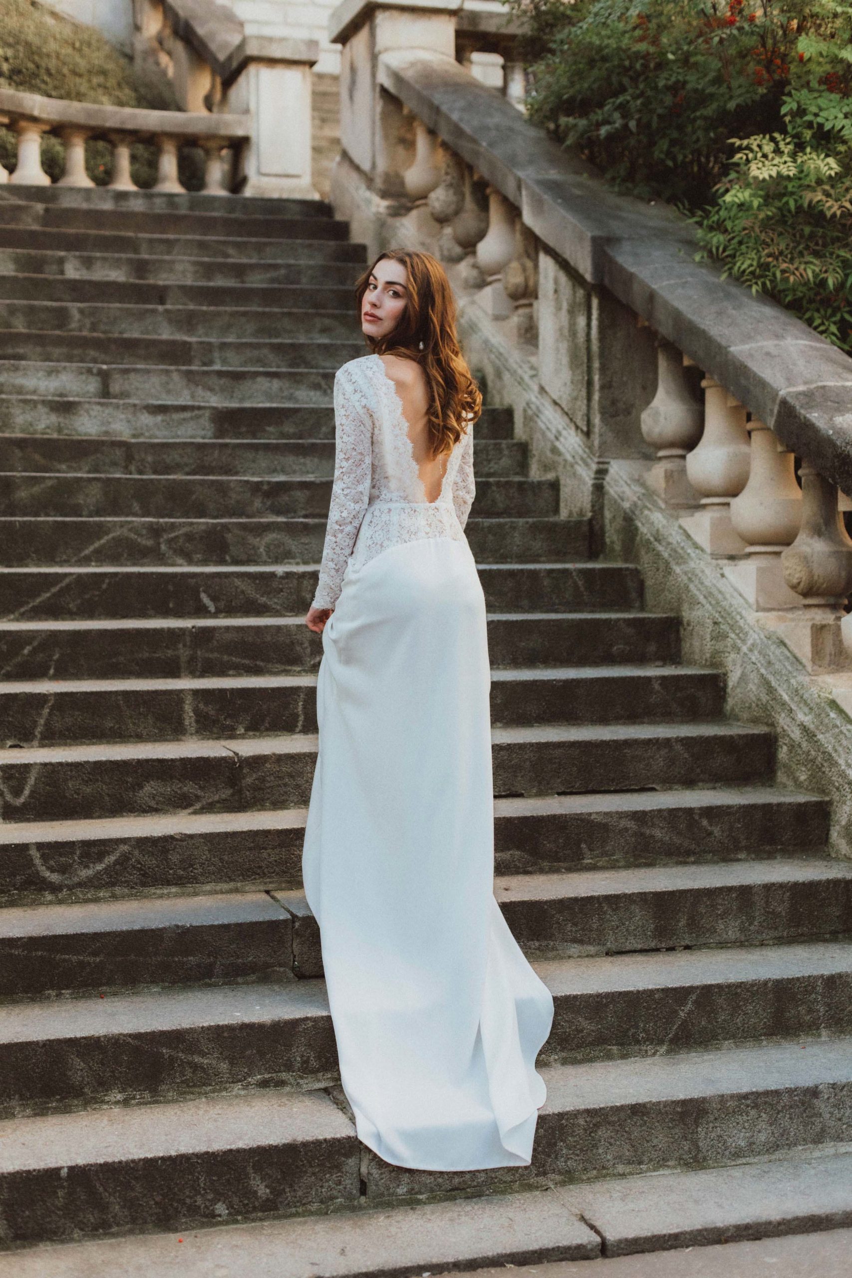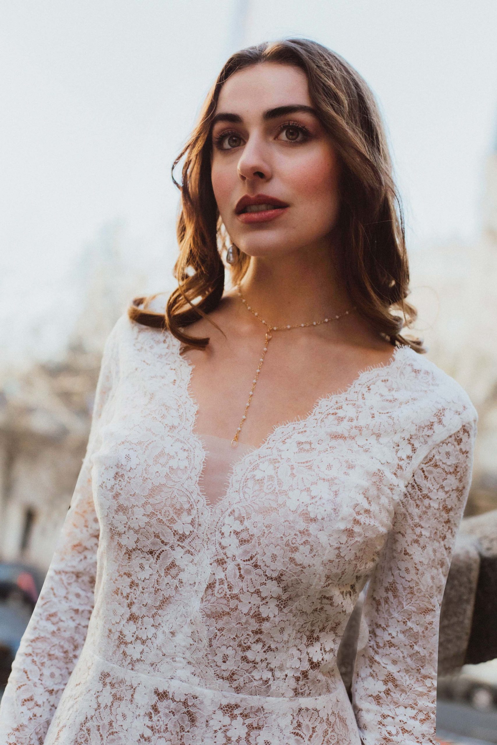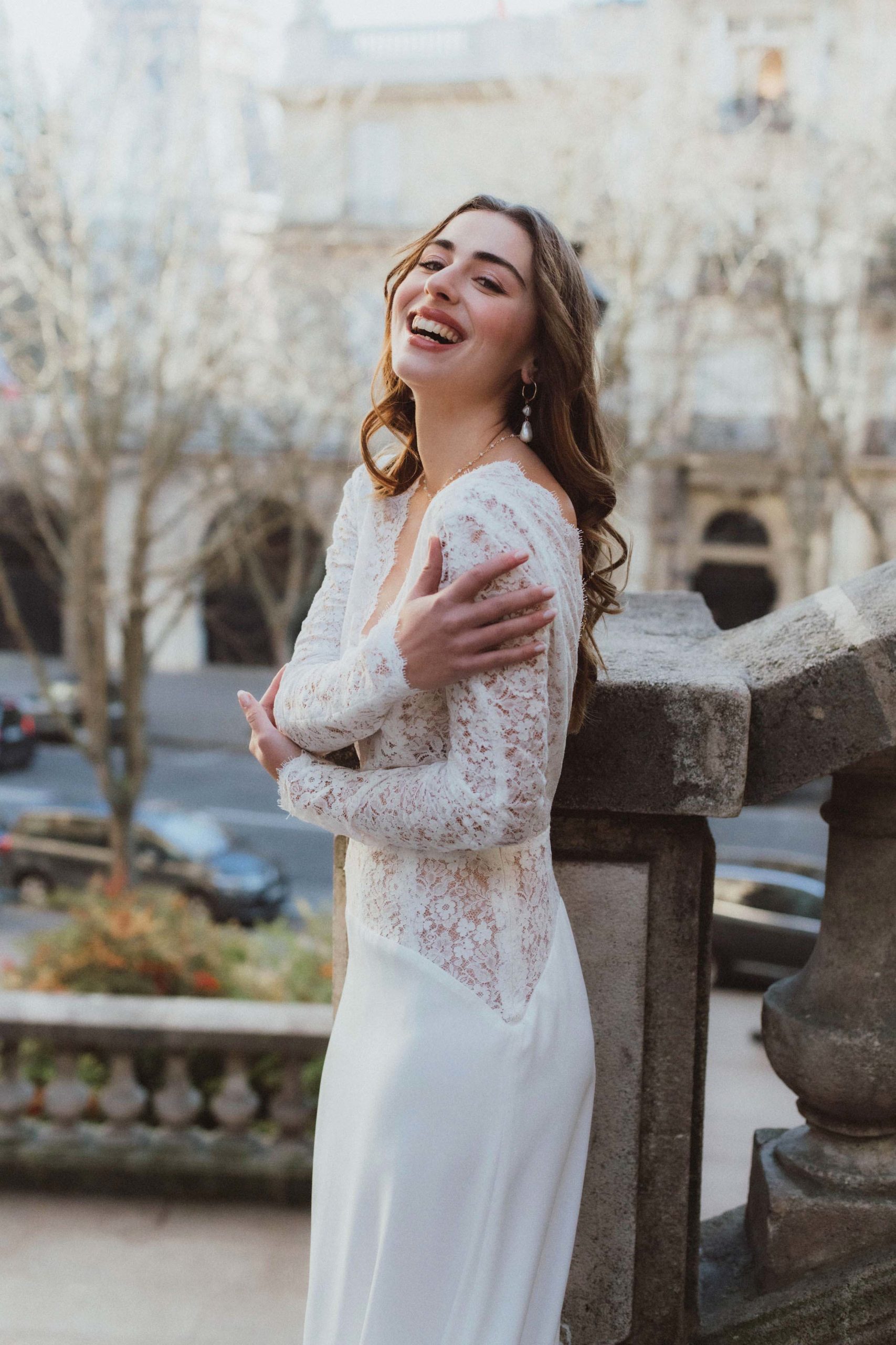 Décolleté plongeant devant et au dos avec finitions dentelées
