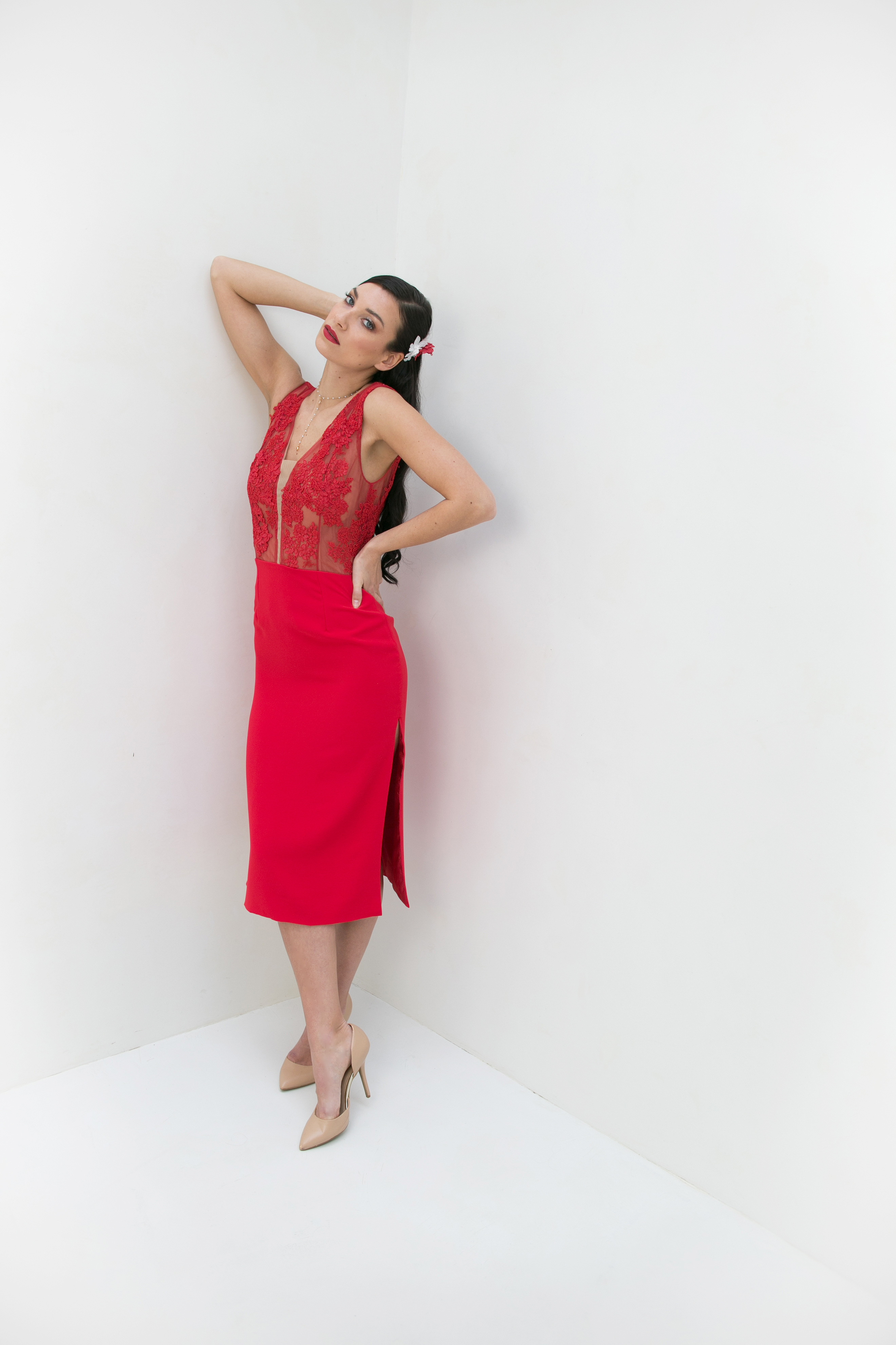 Robe de soirée ou d’invitée Robe de soirée ou d’invitée Dita Haut orné de dentelle rouge pour le côté gracieux Bas en crepe rouge fendu aux côtés pour une touche sensuelle Vous ne passera pas inaperçue ! Une robe incendiaire et irrésistible Collection mariageCollection PromesseRobe de mariée dos nu mariaCollection PromesseRobe de soirée julia
