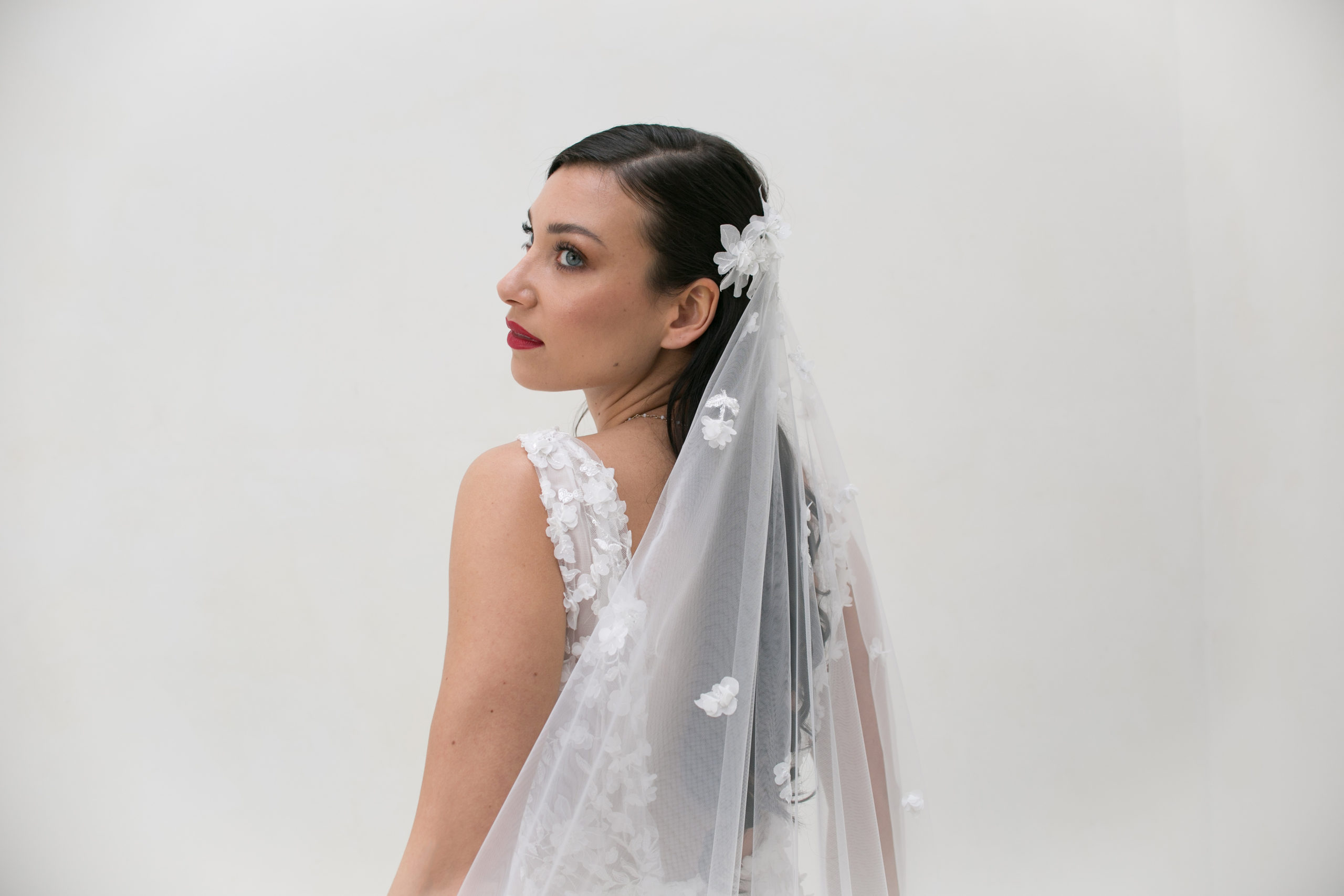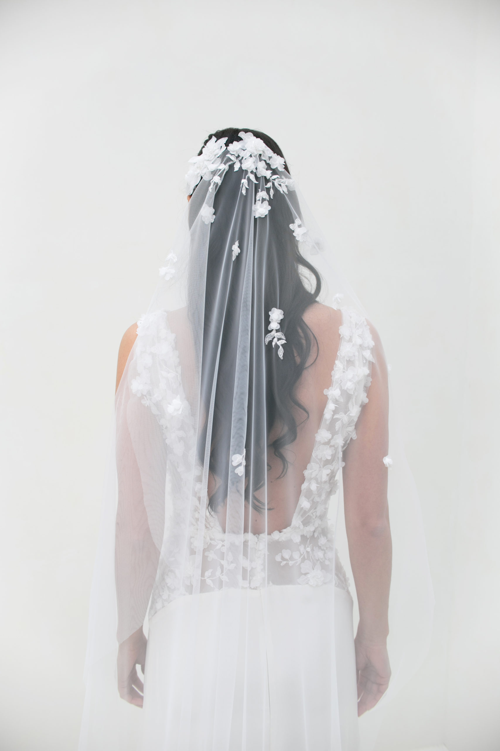 Voile de mariée Sofia Voile de mariée en tulle Broderie de fleurs en 3D cousues à la main Fleurs avec perles et sequins A porter avec les peignes fleuris assortis Collection mariageCollection PromesseVoile de mariée kateCollection PromesseRobe de mariée courte maryline